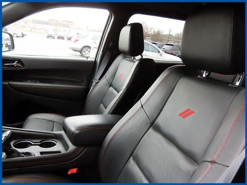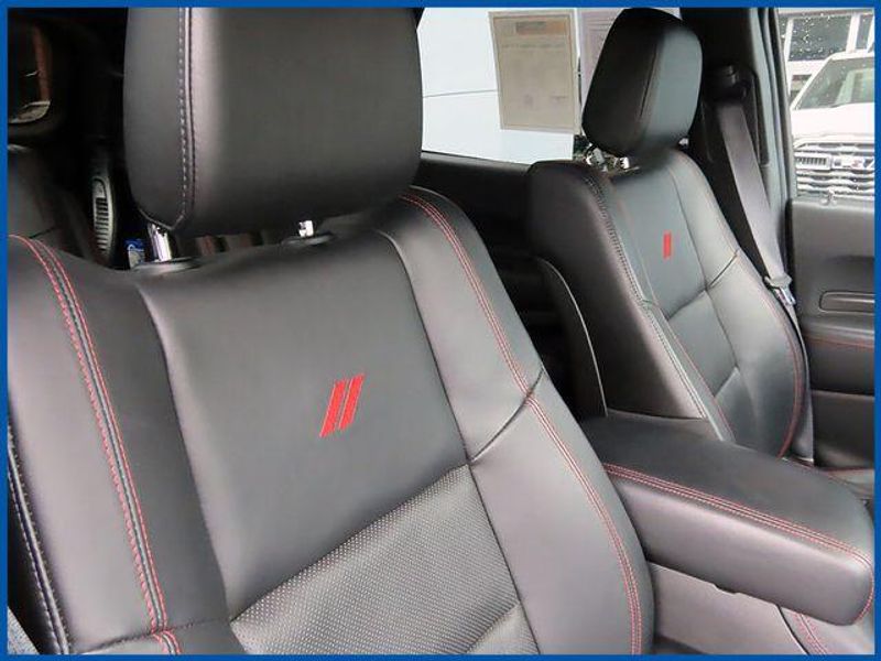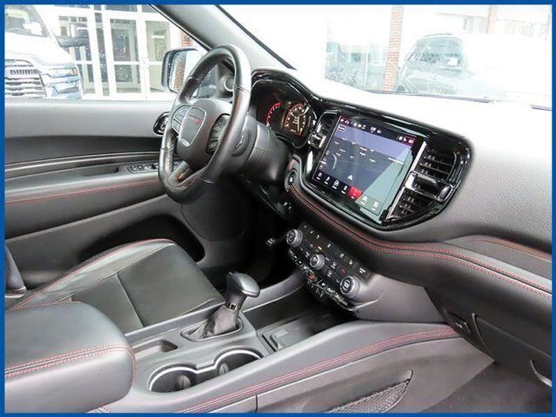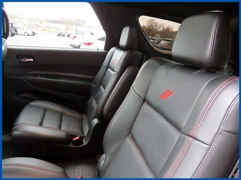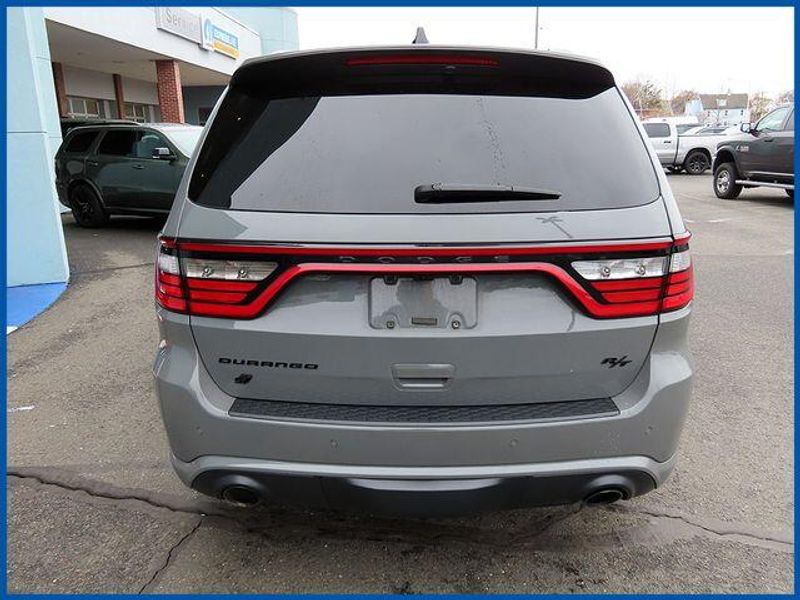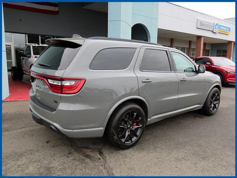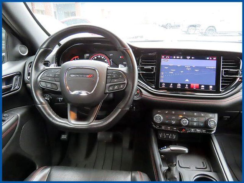 Clean CARFAX. Certified. Destroyer Gray Clearcoat 2023 Dodge Durango R/T Plus AWD 8-Speed Automatic HEMI 5.7L V8 Multi Displacement VVT HEMI 5.7L V8 Multi Displacement VVT, AWD, Destroyer Gray Clearcoat, Black Leather, 115V Auxiliary Power Outlet, 145 mph Maximum Speed Calibration, 160 mph Primary Speedometer, 3rd row seats: split-bench, 7 & 4 Pin Wiring Harness, Active Noise Control System, Adaptive Cruise Control w/Stop, Adaptive Damping, Auto-Dimming Exterior Driver Mirror, Automatic Headlamp Leveling System, Black Roof Rails, Blacktop Package, Class IV Receiver Hitch, Dual Remote USB Port - Charge Only, Electronic Limited Slip Differential Rear Axle, Exterior Mirrors w/Heating Element, Exterior Mirrors w/Memory, Exterior Mirrors w/Supplemental Signals, Floor Console w/Leather Armrest, Full Speed Forward Collision Warning Plus, Gloss Black Badges, Gloss Black Exterior Mirrors, Heated Second Row Seats, High Perform Suspension, High Performance Exhaust, Integrated Roof Rail Crossbars, Leather Trimmed Bucket Seats, Leather Wrapped Door Panels, LED Auxiliary Low Beam & Turn Signal, Navigation system: TomTom, Performance Tuned Steering, Power 6x9 Multi-Function Foldaway Mirrors, Power 8-Way Driver Memory 8-Way Passenger Seats, Power Driver/Passenger 4-Way Lumbar Adjust, Power Sunroof, Power Tilt & Telescopic Steering Column, Premium LED Fog Lamps, Quadra-Trac Active-on-Demand 4WD, Quick Order Package 22T R/T Plus, Radio/Driver Seat/Mirrors Memory, Red Accent Stitching, Red Brembo Brakes w/SRT Performance Pad, Run Flat Tires, Satin Black Dodge Tail Lamp Badge, Sport/Track/Tow/Snow Drive Modes, Tow 'N Go Package, Trailer Brake Control, Upper/Lower Body Color Rear Fascia, Ventilated Front Seats, Wheels: 20'' x 10'' Hyper Black Aluminum.