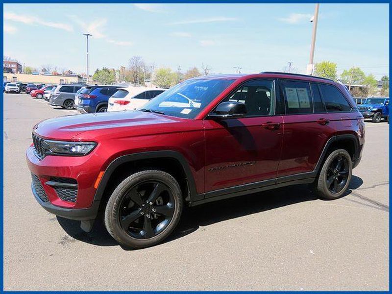 CARFAX One-Owner. Certified. Velvet Red Pearlcoat 2023 Jeep Grand Cherokee Altitude X 4WD 8-Speed Automatic 3.6L V6 24V VVT 3.6L V6 24V VVT, 4WD, Velvet Red Pearlcoat, 115V Auxiliary Power Outlet, 6 Speakers, Air Conditioning, Altitude Appearance Package, Automatic temperature control, Black Headliner, Capri Leatherette/Suede Seats, Delete Laredo Badge, Front Bucket Seats, Front dual zone A/C, Gloss Black Exterior Accents, Heated Front Seats, Heated Steering Wheel, Molded In Color Black/Gloss Black Roof Rails, Power driver seat, Power Liftgate, Power steering, Quick Order Package 23B Altitude, Radio data system, Radio: Uconnect 5 w/8.4'' Display, Rain Sensitive Windshield Wipers, Rear window defroster, Remote Start System, Secondary Active Grille Shutters, Selectable Tire Fill Alert, Wheels: 18'' x 8'' Fully Painted Aluminum 1, Wireless Charging Pad.