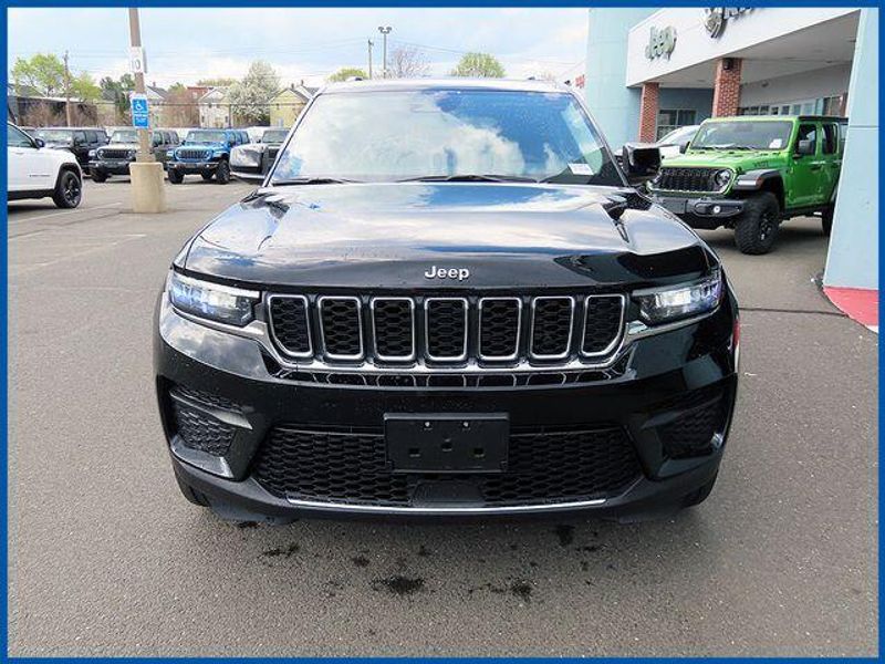 CARFAX One-Owner. Clean CARFAX. Certified. Diamond Black Crystal Pearlcoat 2023 Jeep Grand Cherokee Laredo 4WD 8-Speed Automatic 3.6L V6 24V VVT 3.6L V6 24V VVT, 8-Speed Automatic, 4WD, Diamond Black Crystal Pearlcoat, 180 Amp Alternator, 6 Speakers, Air Conditioning, Automatic Headlamp Levelling System, Automatic temperature control, Front Center Armrest w/Storage, Front dual zone A/C, Heavy-Duty Engine Cooling, Molded In Color Black/Gloss Black Roof Rails, Passenger door bin, Quick Order Package 22A Laredo, Radio data system, Radio: Uconnect 5 w/8.4'' Display, Rear Load Levelling Suspension, Trailer Hitch Zoom, Trailer Tow Prep Group (B) (DISC).