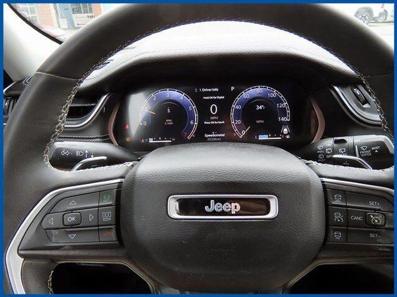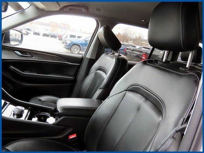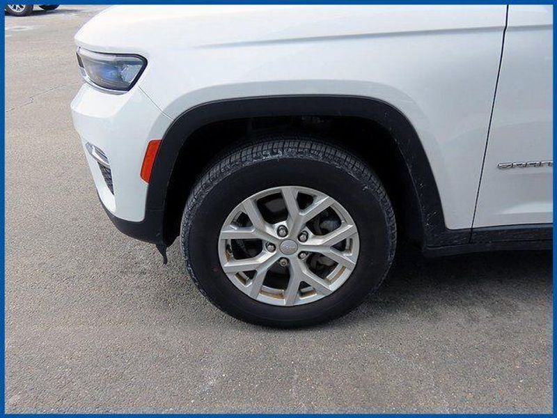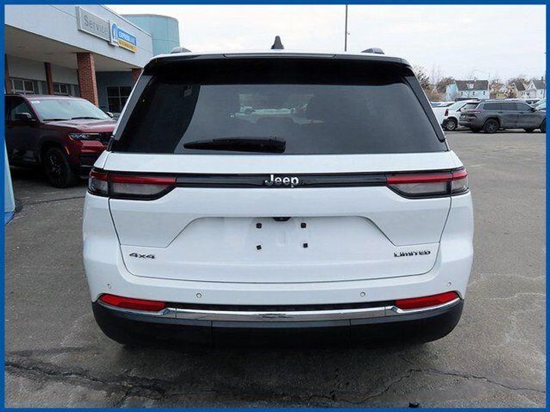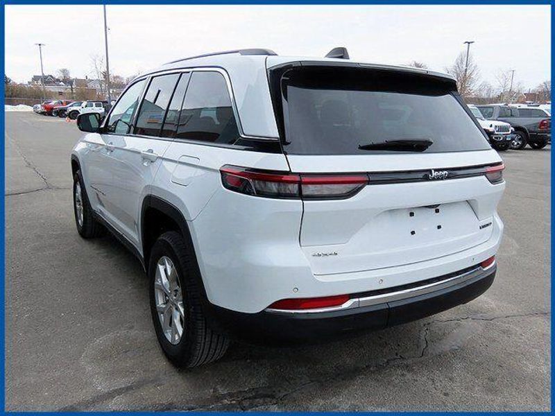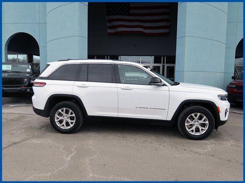 CARFAX One-Owner. Certified. Bright White Clearcoat 2023 Jeep Grand Cherokee Limited 4WD 8-Speed Automatic 3.6L V6 24V VVT Grand Cherokee Limited, 4WD, Bright White Clearcoat, Global Black Artificial Leather, 6 Speakers, Front Bucket Seats, Heated front seats, Heated rear seats, Memory seat, Navigation System, Power driver seat, Power passenger seat, Power steering, Power windows, Quick Order Package 23E, Radio: Uconnect 5 Nav w/10.1'' Display, Remote keyless entry, Steering wheel mounted audio controls.