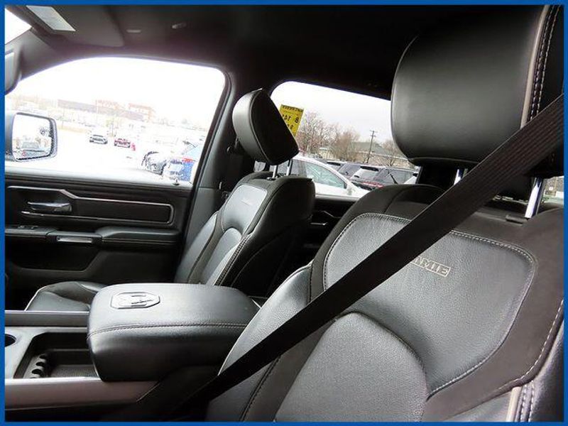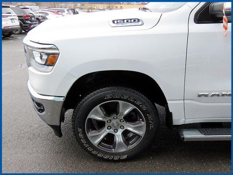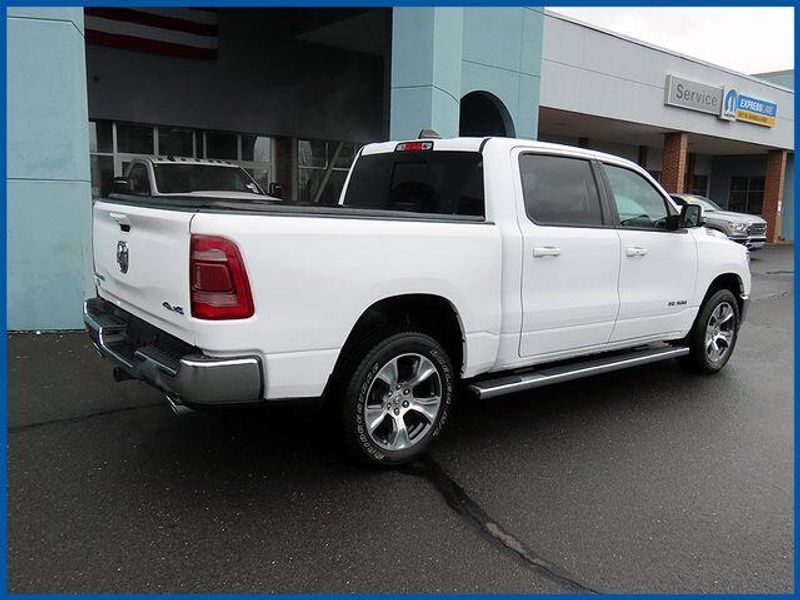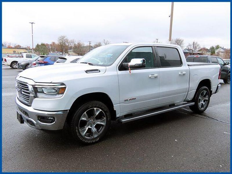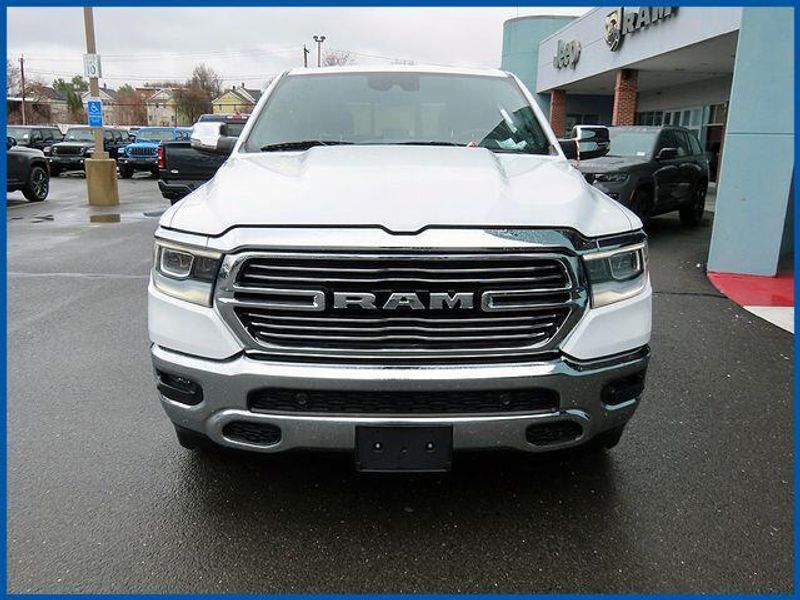 CARFAX One-Owner. Clean CARFAX. Certified. Bright White Clearcoat 2023 Ram 1500 Laramie 4WD 8-Speed Automatic HEMI 5.7L V8 Multi Displacement VVT eTorque 1500 Laramie, HEMI 5.7L V8 Multi Displacement VVT eTorque, 8-Speed Automatic, Bright White Clearcoat, 10 Speakers, 12'' Touchscreen Display, 2nd Row In Floor Storage Bins, 4G LTE Wi-Fi Hot Spot, Apple CarPlay, Auto High Beam Headlamp Control, Blind Spot & Cross Path Detection, Connected Travel & Traffic Services, Connectivity - US/Canada, Disassociated Touchscreen Display, Electric Shift-On-Demand Transfer Case, Foam Bottle Insert (Door Trim Panel), For Details, Visit DriveUconnect.com, For More Info, Call 800-643-2112, Front Door Accent Lighting, Front LED Fog Lamps, Global Telematics Box Module (TBM), Google Android Auto, GPS Antenna Input, GPS Navigation, HD Radio, Integrated Center Stack Radio, Integrated Voice Command w/Bluetooth, Laramie Level 1 Equipment Group, LED Reflector Headlamps, Navigation System, ParkSense Front/Rear Park Assist w/Stop, Quick Order Package 27H Laramie, Radio: Uconnect 5 Nav w/12.0'' Display, Rain Sensitive Windshield Wipers, Rear Door Accent Lighting, Rear Power Sliding Window, Rear Window Defroster, Remote Tailgate Release, SiriusXM Radio Service, SiriusXM w/360L, USB Host Flip.