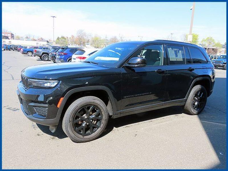 CARFAX One-Owner. Clean CARFAX. Certified. Diamond Black Crystal Pearlcoat 2024 Jeep Grand Cherokee Altitude X 4WD 8-Speed Automatic 3.6L V6 24V VVT Grand Cherokee Altitude X, 4WD, Diamond Black Crystal Pearlcoat, Global Black Artificial Leather, 115V Auxiliary Power Outlet, 6 Speakers, Air Conditioning, Altitude X, Automatic temperature control, Black Headliner, Capri Leatherette/Suede Seats, Delete Laredo Badge, Front Bucket Seats, Front dual zone A/C, Gloss Black Exterior Accents, Heated Front Seats, Heated Steering Wheel, Power Liftgate, Power steering, Power Sunroof, Quick Order Package 23M Altitude X, Radio data system, Radio: Uconnect 5 w/8.4'' Display, Rain Sensitive Windshield Wipers, Remote keyless entry, Remote Start System, Selectable Tire Fill Alert, Wheels: 18'' x 8'' Fully Painted Aluminum 1, Wireless Charging Pad.