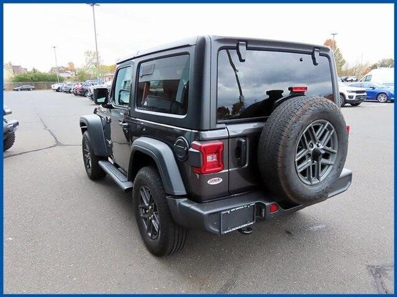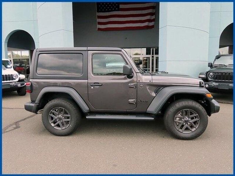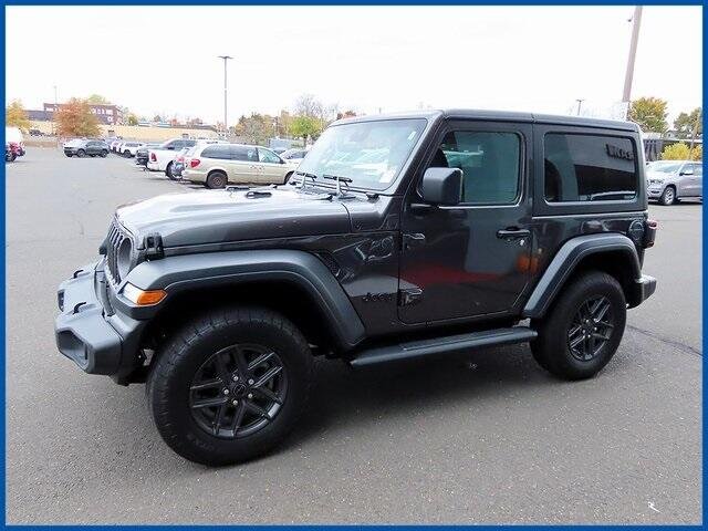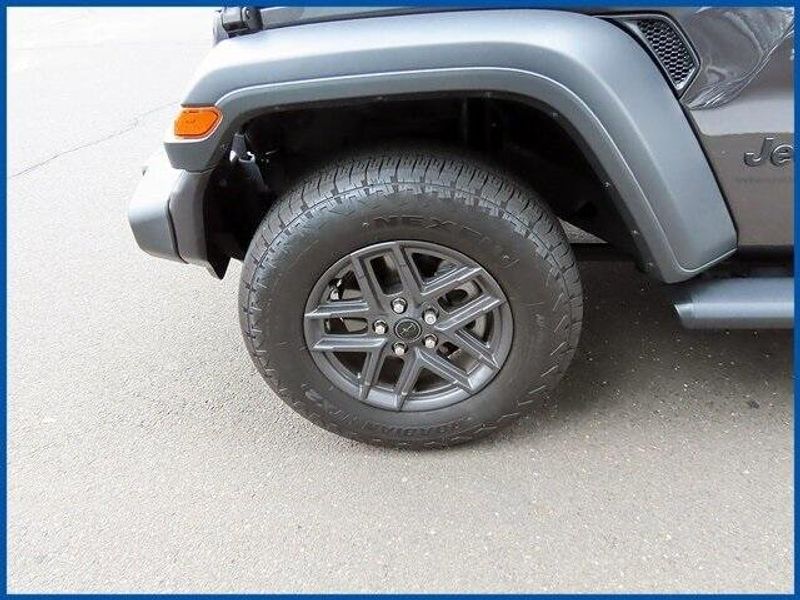 CARFAX One-Owner. Certified. Granite Crystal Metallic Clearcoat 2024 Jeep Wrangler Sport S 4WD 8-Speed Automatic 2.0L I4 DOHC 2.0L I4 DOHC, 8-Speed Automatic, Granite Crystal Metallic Clearcoat, 2-Door Passive Entry, Front Door Locks, 8 Speakers, Advanced Brake Assist, Air Conditioning w/Auto Temperature Control, Air Filtering, Auto High Beam Headlamp Control, Automatic Headlamps, Blind Spot & Cross Path Detection, Cluster 7.0'' TFT Color Display, Convenience Group, Corning Gorilla Glass, Deep Tint Sunscreen Windows, Emergency/Assistance Call, Enhanced Adaptive Cruise Control, Front 1-Touch Down Power Windows, Heated Front Seats, Heated Steering Wheel, Injection Molded Black Rear Bumper, LED Taillamps, ParkSense Rear Park Assist System, Power Heated Mirrors, Premium Wrapped Steering Wheel, Quick Order Package 22S Sport S, Radio: Uconnect 5 w/12.3'' Display, Remote Keyless Entry, Remote Start System, Safety Group, Security Alarm, Speed Sensitive Power Locks, Sport S, Sun Visors w/Illuminated Vanity Mirrors, Universal Garage Door Opener, Wheels: 17'' x 7.5'' Gray.
