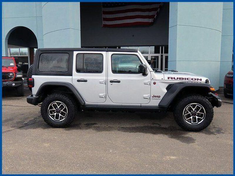 CARFAX One-Owner. Clean CARFAX. Certified. Silver Zynith Clearcoat 2024 Jeep Wrangler Rubicon 4WD 8-Speed Automatic 3.6L V6 24V VVT **SOFT TOP NOT INCLUDED**, 3.6L V6 24V VVT, 4WD, Silver Zynith Clearcoat, 8 Speakers, AM/FM radio: SiriusXM, Apple CarPlay, Front Bucket Seats, Google Android Auto, Quick Order Package 24R Rubicon, Radio: Uconnect 5 w/12.3'' Display.