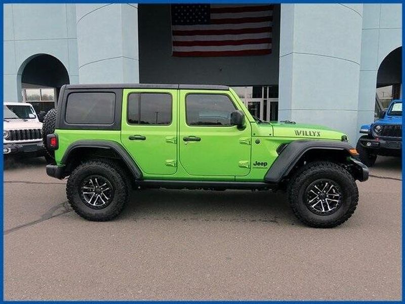 CARFAX One-Owner. Clean CARFAX. Certified. Mojito Clearcoat 2025 Jeep Wrangler Willys 4WD 8-Speed Automatic 3.6L V6 24V VVT Wrangler Willys, 3.6L V6 24V VVT, Mojito Clearcoat, 2-Door Passive Entry, Front Door Locks, 35'' Tire Suspension, 4-Wheel Drive Swing Gate Decal, 4.56 Rear Axle Ratio, 7 & 4 Pin Wiring Harness, 8 Speakers, 97 MPH Vehicle Max Speed Calibration, Advanced Brake Assist, Air Conditioning, Air Conditioning w/Auto Temperature Control, Air Filtering, AM/FM radio: SiriusXM, Anti-Lock 4-Wheel Disc Perf Brakes, Automatic Headlamps, Auxiliary Switches, Black Grille, Class II Receiver Hitch, Cluster 7.0'' TFT Color Display, Convenience Group, Conventional Differential Front Axle, Corning Gorilla Glass, Dana M210 Wide HD Tube Front Axle, Dana M220 Wide Rear Axle, Daytime Running Lamps LED Accents, Deep Tint Sunscreen Windows, E-Locker Rear Axle, Emergency/Assistance Call, Enhanced Adaptive Cruise Control, Front LED Fog Lamps, Full Speed Forward Collision Warning Plus, Heated Front Seats, Heated Steering Wheel, Injection Molded Black Rear Bumper, LED Premium Reflector Headlamps, Mold In Color Bumper w/Gloss Black, Molded in Color Rubicon Highline Flare, MOPAR All-Weather Floor Mats, MOPAR Hinge-Gate Reinforcement, Off-Road Plus Mode, Power Heated Mirrors, Premium Wrapped Steering Wheel, Quick Order Package 24W Willys, Radio data system, Radio: Uconnect 5 w/12.3'' Display, Remote Start System, Security Alarm, Sun Visors w/Illuminated Vanity Mirrors, Universal Garage Door Opener, Wheel Flare Extensions, Wheels: 17'' x 7.5'' Painted Black, Wheels: 17'' x 8'' Machined w/Black Pockets, Willy's Suspension, Willys Hood Decal, Xtreme 35'' Tire Package.