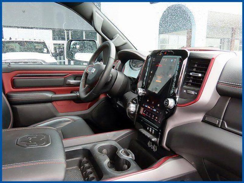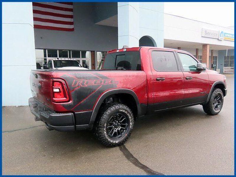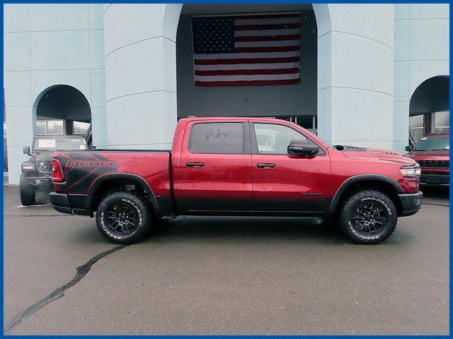 CARFAX One-Owner. Certified. Delmonico Red Pearlcoat 2025 Ram 1500 Rebel 4WD 8-Speed Automatic 3.0L I6 3.0L I6, Delmonico Red Pearlcoat, Black Cloth, 10 Speakers, AM/FM radio: SiriusXM with 360L, Auto Power-Folding Mirrors, Auto-Dimming Exterior Driver Mirror, Black Premium Power Mirrors, Cloth/Vinyl Bucket Seats, Convex Wide-Angle Exterior Mirror Insert, Exterior Mirrors Courtesy Lamps, Exterior Mirrors w/Heating Element, Exterior Mirrors w/Supplemental Signals, GPS Antenna Input, GPS Navigation, Heated front seats, Navigation System, Power Adjustable Pedals, Quick Order Package 21W Rebel, Radio: Uconnect 5 Nav w/12.0'' Display, Rear Window Defroster, Rebel Level 1 Equipment Group, Remote Tailgate Release, Wireless Charging Pad.